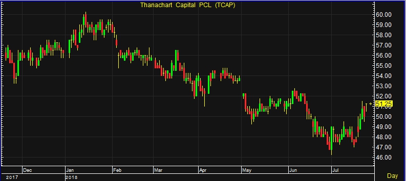 ทั้งนี้ ราคาหุ้น TCAP ปรับตัวขึ้นแรงวันนี้หลังมีการรายงานข่าวว่า ที่ประชุมคณะกรรมการบริษัทวานนี้ (24 ก.ค.) อนุมัติโครงการซื้อหุ้นคืนเพื่อบริหารทางการเงิน ในวงเงินไม่เกิน 1 พันล้านบาท โดยมีจำนวนหุ้นที่จะซื้อคืนจำนวนไม่เกิน 79.3 ล้านหุ้น และเมื่อรวมกับหุ้นที่ซื้อคืนระหว่างวันที่ 10 ก.พ.-9 ส.ค.58 จำนวน 41.35 ล้านหุ้น รวมจำนวน 120.65 ล้านหุ้น คิดเป็นไม่เกิน 10% ของหุ้นที่จำหน่ายได้แล้วทั้งหมดของบริษัท
