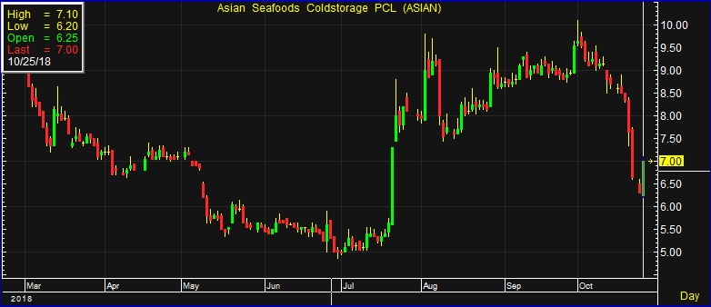 โดยราคาหุ้น ASIAN ปรับตัวขึ้นแรงวันนี้หลังปรับตัวลดลงยาวติดต่อกัน 8 วัน นับตั้งแต่ราคาหุ้นปิดที่ระดับ 8.80 บาท เมื่อวันที่ 11 ต.ค.61