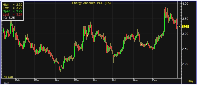 ผู้สื่อข่าวรายงาน วันนี้ 6 ต.ค.68 ราคาหุ้น บริษัท พลังงานบริสุทธิ์ จำกัด (มหาชน) หรือ EA ณ เวลา 10:08 น. อยู่ที่ระดับ 3.24 บาท บวก 0.08 บาท หรือ 2.53% สูงสุดที่ระดับ 3.30 บาท ต่ำสุดที่ระดับ 3.22 บาท ด้วยมูลค่าการซื้อขาย 68.94 ล้านบาท