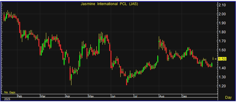 สำหรับแนวโน้มผลประกอบการในไตรมาสที่ 4/2568 จะพลิกกลับมาเป็นกำไร หลังจากที่มีบันทึกกำไรพิเศษจาก NT ซึ่งเป็นเฉพาะในส่วนของดอกเบี้ย แต่ในส่วนเงินต้นได้มีการบันทึกไปก่อนหน้านี้แล้ว โดยคำแนะนำ JAS ราคาเป้าหมาย 1.97 บาท แม้ตลาดอาจเก็งกำไรเชิงบวกจากความคืบหน้าการได้รับเงินชดเชยก้อนใหญ่จาก NT