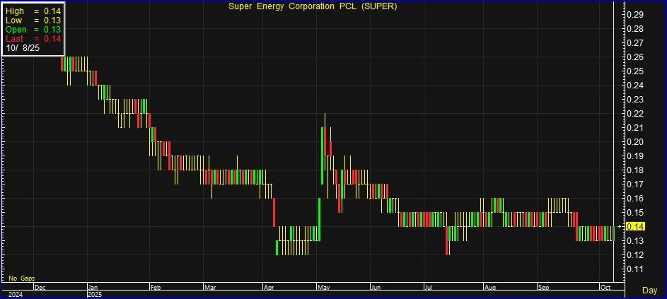 ผู้สื่อข่าวรายงานว่า วันนี้ (8 ต.ค.68) ราคาหุ้น บริษัท ซุปเปอร์ เอนเนอร์ยี คอร์เปอเรชั่น จำกัด (มหาชน) หรือ SUPER ณ เวลา 10:06 น. อยู่ที่ระดับ 0.14 บาท บวก 0.01 บาท หรือ 7.69% สูงสุดที่ระดับ 0.14 บาท ต่ำสุดที่ระดับ 0.13 บาท ด้วยมูลค่าการซื้อขาย 0.03 ล้านบาท