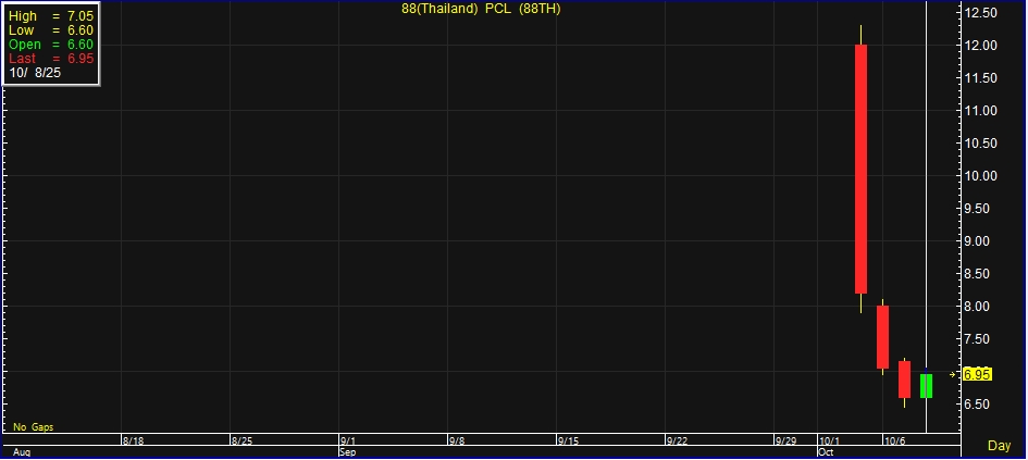 ผู้สื่อข่าวรายงานว่า วันนี้ (8 ต.ค.68) ราคาหุ้น บริษัท 88 (ไทยแลนด์) จำกัด (มหาชน) หรือ 88TH ณ เวลา 10:26 น. อยู่ที่ระดับ 6.95 บาท บวก 0.35 บาท หรือ 5.30% สูงสุดที่ระดับ 7.05 บาท ต่ำสุดที่ระดับ 6.60 บาท ด้วยมูลค่าการซื้อขาย 85.16 ล้านบาท