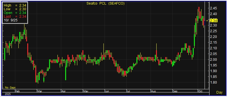 โดยราคาหุ้นปรับตัวขึ้นหลัง SEAFCO แจ้งผ่าน ตลาดหลักทรัพย์แห่งประเทศไทย (ตลท.) ว่าบริษัทฯ ได้รับงานโครงการใหม่ในเดือนตุลาคม 2568 จำนวน 2 โครงการ จากกิจการร่วมค้า ซีเคเอสที–โออาร์ ได้แก่ 1.) โครงการกำแพงกันดิน อาคารปล่องระบายอากาศ 1 รถไฟฟ้าสายสีส้ม ช่วงบางขุนนนท์-มีนบุรี (สุวินทวงศ์) ส่วนตะวันออก กทม. คาดการณ์ดำเนินการก่อสร้างกลางเดือนพฤศจิกายน 2568