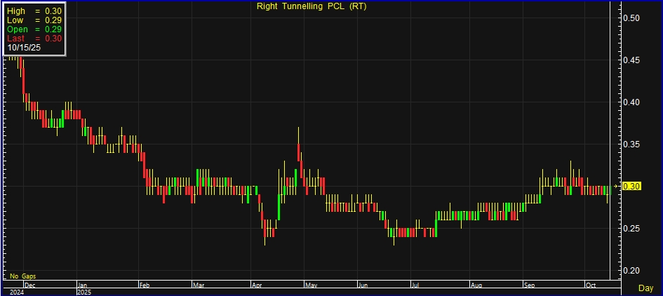 ผู้สื่อข่าวรายงานว่า วันนี้ (15 ต.ค.68) ราคาหุ้น บริษัท ไร้ท์ทันเน็ลลิ่ง จำกัด (มหาชน) หรือ RT ณ เวลา 10:06 น. อยู่ที่ระดับ 0.30 บาท บวก 0.01 บาท หรือ 3.45% สูงสุดที่ระดับ 0.30 บาท ต่ำสุดที่ระดับ 0.29 บาท ด้วยมูลค่าการซื้อขาย 0.33 ล้านบาท