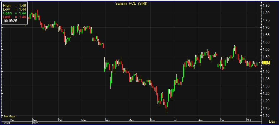 ผู้สื่อข่าวรายงานว่า วันนี้ (15 ต.ค.68) ราคาหุ้น บริษัท แสนสิริ จำกัด (มหาชน) หรือ SIRI ณ เวลา 10:27 น. อยู่ที่ระดับ 1.46 บาท บวก 0.03 บาท หรือ 2.10% สูงสุดที่ระดับ 1.46 บาท ต่ำสุดที่ระดับ 1.44 บาท ด้วยมูลค่าการซื้อขาย 10.03 ล้านบาท
