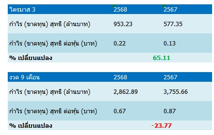 บริษัท เอสซีจี แพคเกจจิ้ง จำกัด (มหาชน) หรือ SCGP รายงานผลการดำเนินงานงวดไตรมาส 3 และงวด 9 เดือนแรกของปี 2568 มีกำไรสุทธิดังนี้
