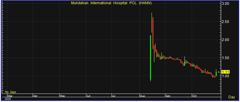 ผู้สื่อข่าวรายงานว่า วันนี้(31 ต.ค.68)บริษัท โรงพยาบาลมุกดาหารอินเตอร์เนชั่นแนล จำกัด (มหาชน) หรือ HANN ณ เวลา 11:27 น. อยู่ที่ระดับ 1.11 บาท บวก 0.14 บาท หรือ 14.43% ด้วยมูลค่าซื้อขาย 39.06 ล้านบาท