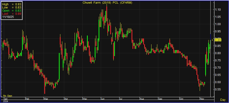 โดยราคาหุ้น CFARM ปรับตัวเพิ่มขึ้นวันนี้ คาดนักลงทุนซื้อเก็งกำไรรับผลการดำเนินงานเติบโตต่อเนื่องในไตรมาส 4 หลังงวดไตรมาส 3 บริษัทพลิกมีกำไร 10 ล้านบาท