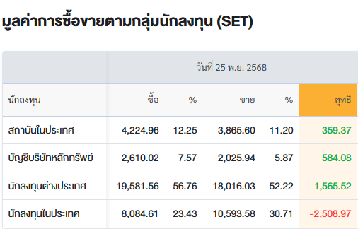 สรุปการซื้อ-ขายรายกลุ่ม ประจำวันที่ 25 พ.ย.68