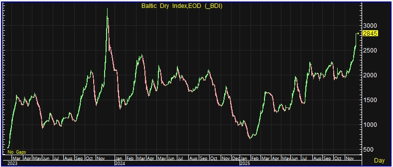 โดยหุ้นกลุ่มเดินเรือปรับตัวขึ้นแรงวันนี้ รับอานิสงส์จาก ดัชนีค่าระวางเรือ (BDI) แตะระดับ 2,845 จุด ณ วันที่ 3 ธ.ค.68 โดยนิวไฮรอบ 2 ปี เดือน โดยเทียบตั้งแต่ดัชนียืนที่ระดับ 2,848 จุด เมื่อวันที่ 6 ธ.ค.2566