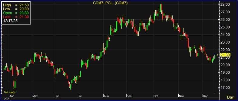 ผู้สื่อข่าวรายงานว่า วันนี้ (17 ธ.ค.68) ราคาหุ้น บริษัท คอมเซเว่น จำกัด (มหาชน) หรือ COM7 ณ เวลา 11:40 น. อยู่ที่ระดับ 21.30 บาท บวก 0.50 บาท หรือ 2.40% สูงสุดที่ระดับ 21.50 บาท ต่ำสุดที่ระดับ 20.80 บาท ด้วยมูลค่าการซื้อขาย 105.23 ล้านบาท