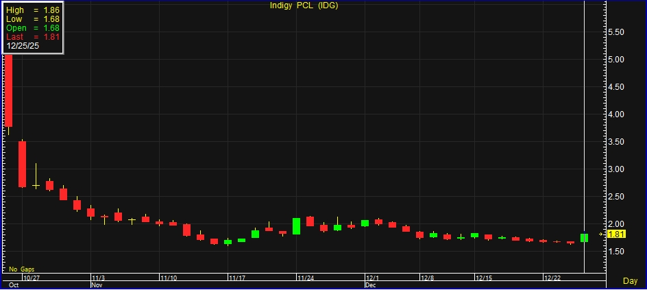 ผู้สื่อข่าวรายงานว่า วันนี้ (25 ธ.ค.68) ราคาหุ้น บริษัท อินดิจี จำกัด (มหาชน) หรือ IDG ณ เวลา 10:41 น. อยู่ที่ระดับ 1.81 บาท บวก 0.16 บาท หรือ 9.70% สูงสุดที่ระดับ 1.86 บาท ต่ำสุดที่ระดับ 1.68 บาท ด้วยมูลค่าการซื้อขาย 13.28 ล้านบาท