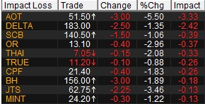 แรงขายทำกำไร DELTA-AOT ฉุด SET ปิดลบ 5 จุด