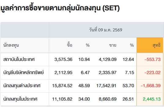 สรุปการซื้อ-ขายรายกลุ่ม ประจำวันที่ 9 ม.ค.69