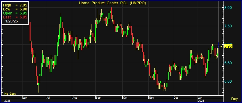 ผู้สื่อข่าวรายงานว่า วันนี้ (28 ม.ค.69) ราคาหุ้น บริษัท โฮม โปรดักส์ เซ็นเตอร์ จำกัด (มหาชน) หรือ HMPRO ณ เวลา 10:59 น. อยู่ที่ระดับ 6.95 บาท บวก 0.20 บาท หรือ 2.96% สูงสุดที่ระดับ 7.05 บาท ต่ำสุดที่ระดับ 6.90 บาท ด้วยมูลค่าการซื้อขาย 145.59 ล้านบาท