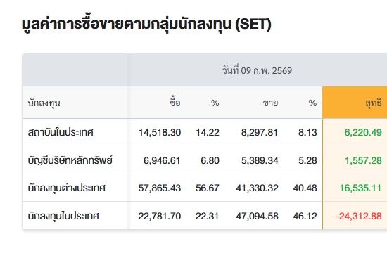 สรุปการซื้อ-ขายรายกลุ่ม ประจำวันที่ 9 ก.พ.69