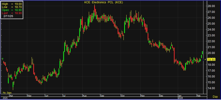 ผู้สื่อข่าวรายงานว่า วันนี้ (11 ก.พ.69) ราคาหุ้น บริษัท เคซีอี อีเลคโทรนิคส์ จำกัด (มหาชน) หรือ KCE ณ เวลา 10:07 น. อยู่ที่ระดับ 18.90 บาท ลบ 1.40 บาท หรือ 6.90% สูงสุดที่ระดับ 19 บาท ต่ำสุดที่ระดับ 18.70 บาท ด้วยมูลค่าการซื้อขาย 186.84 ล้านบาท