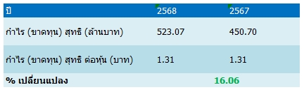 ส่วนในปี 2568 บริษัทมีการรับรู้รายการพิเศษจากเหตุการณ์ไฟไหม้บริเวณห้องปฏิบัติการ (ห้องแล็บ) เมื่อวันที่ 1 พฤษภาคม 2568 โดยขั้นตอนการชดเชยได้สิ้นสุดลงแล้ว บริษัทได้รับค่าสินไหมทดแทนจำนวน 164.5 ล้านบาท และมีค่าเสียหายเกิดขึ้น 107.1 ล้านบาท คิดเป็นส่วนเพิ่มจากมูลค่าเสียหายทางบัญชี 57.4 ล้านบาท หรือสุทธิจากภาษีเงินได้จำนวน 49.5 ล้านบาท