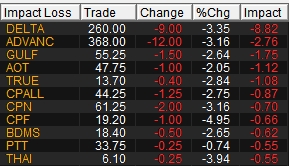 10 หุ้นกดดัชนีเช้านี้