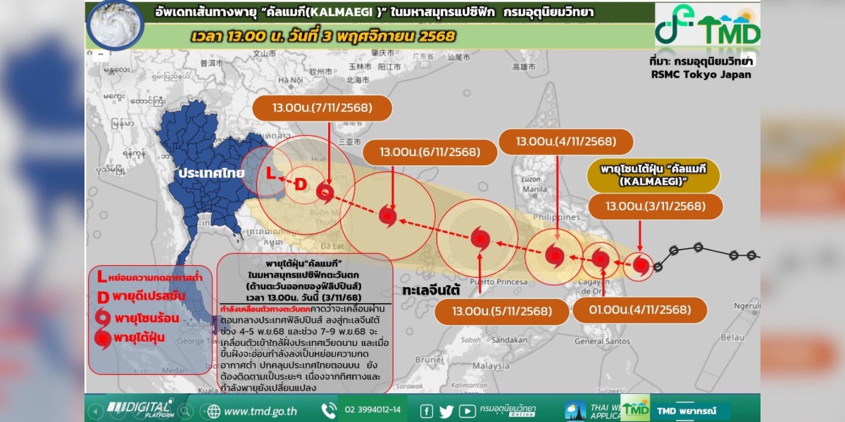 “อุตุ” เตือนพายุไต้ฝุ่น “โนรู” จ่อเข้าภาคอีสาน “อุบล-อำนาจเจริญ” 29 ก.ย.นี้