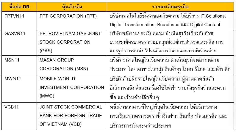 ตลท. รับจดทะเบียน 5 DR อ้างอิงหุ้นเวียดนาม เทรด 16 ก.ย. นี้