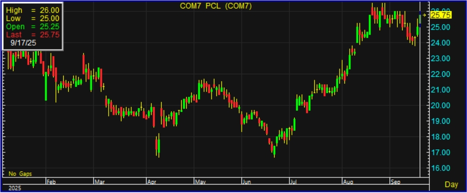COM7 บวก 3% รับแรงหนุนยอดขาย iPhone 17 พุ่ง 15–20% โบรกแนะนำ “ซื้อ” ราคาเป้าหมาย 30 บาท มองกำไรปี 68 โต 21% จากดีมานด์สมาร์ทโฟน–แท็บเล็ต–พีซี และส่วนแบ่งตลาดที่เพิ่มขึ้น หนุนกำไรไตรมาส 3–4 แข็งแกร่งต่อเนื่อง