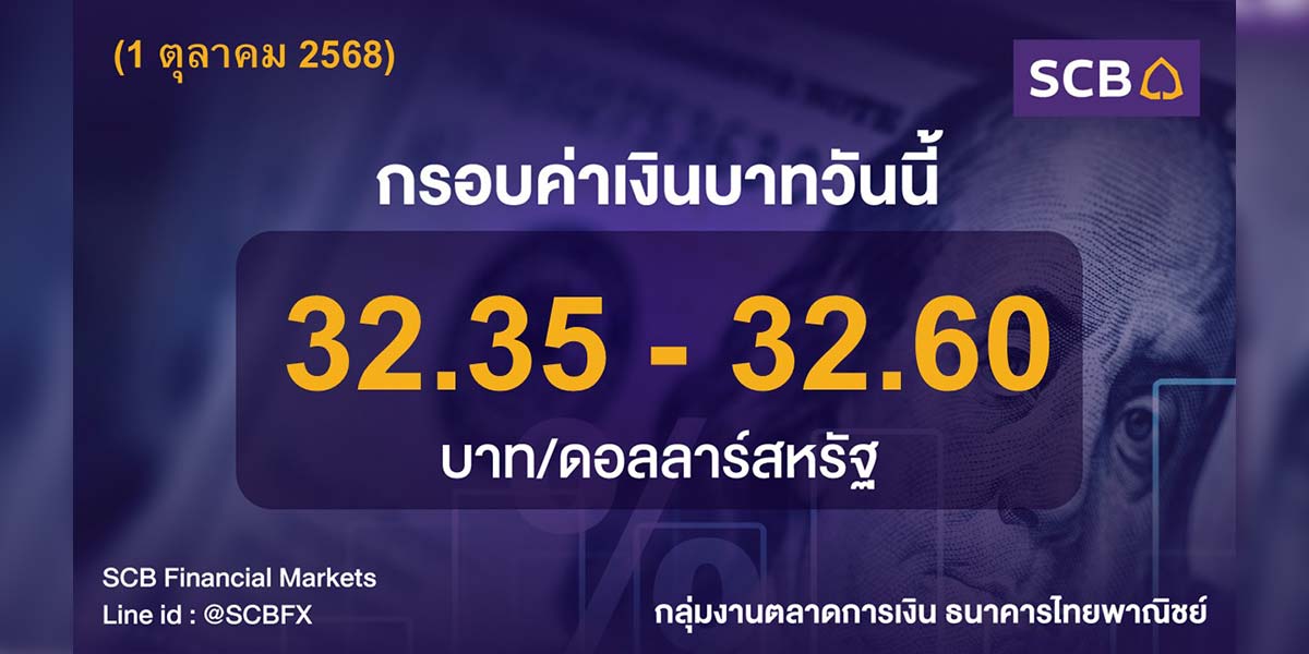 SCB Financial Markets คาดกรอบเงินบาทวันนี้ 32.35-32.60 บ./ดอลลาร์