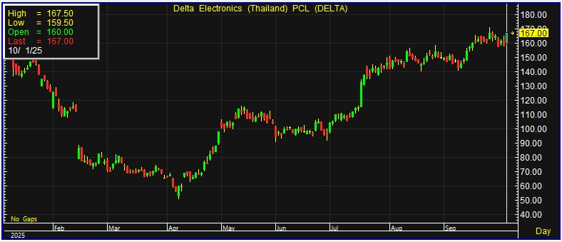 DELTA เด้ง 5% รับดีมานด์ Data Center หนุน กำไร Q3 ฟื้นตัว โบรกแนะทยอยซื้อ เป้า 180 บ.