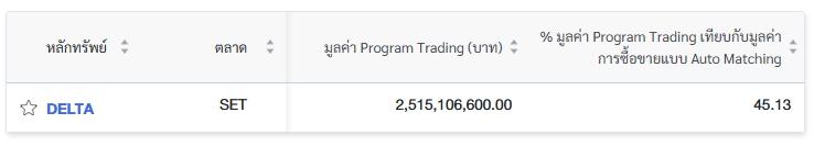 อย่างไรก็ตามเมื่อนำคำสั่งซื้อขายผ่าน Program Trading วันนี้มาเทียบกับมูลค่าการซื้อขายทั้งตลาดหลักทรัพย์ฯ วันนี้จะพบว่ามีปริมาณการซื้อขายคิดเป็นสัดส่วนประมาณ 42.59%