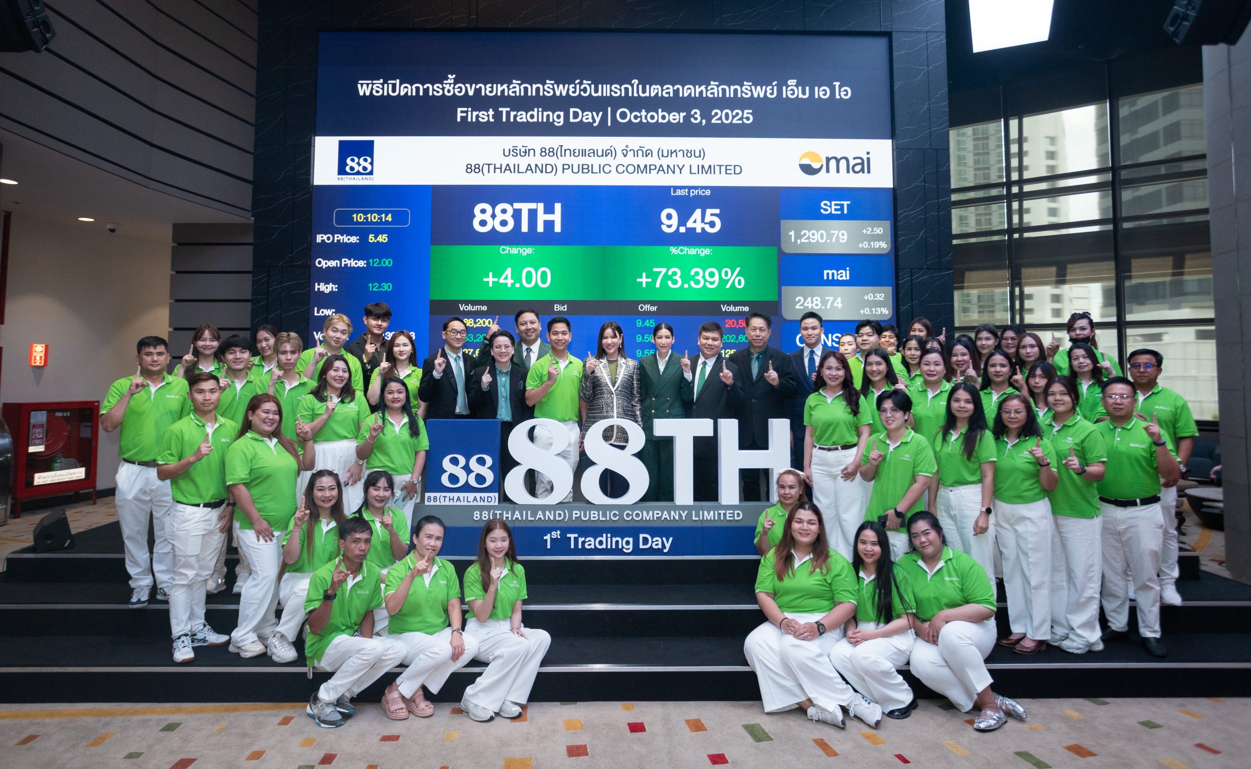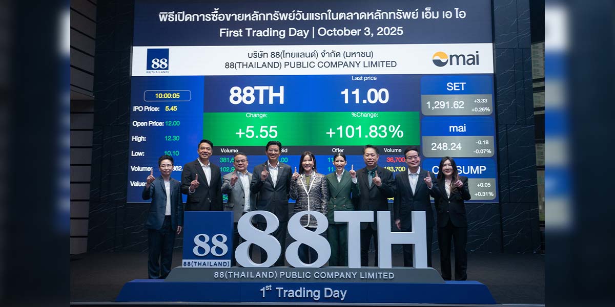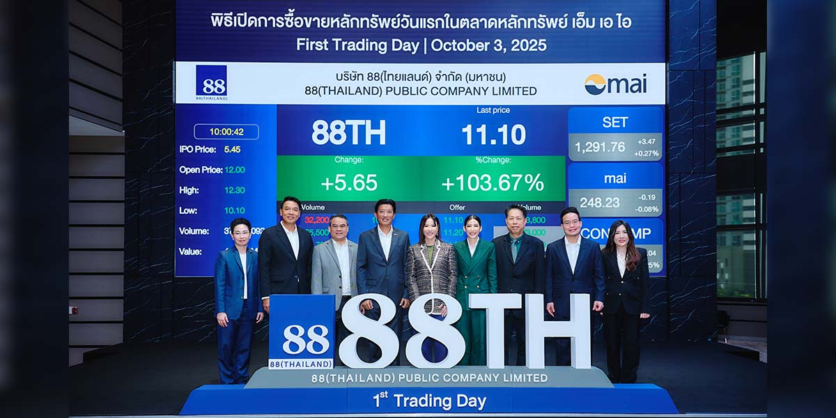 นางณัฐฐินี กล่าวทิ้งท้าย บริษัทจะยังคงยึดแนวทางการดำเนินธุรกิจที่มุ่งเน้นคุณภาพ สร้างความแตกต่าง และรักษามาตรฐานด้านธรรมาภิบาล เพื่อสร้างความยั่งยืนให้แก่นักลงทุน ผู้ถือหุ้น และสังคม โดยหวังว่า “88TH” จะเป็นอีกหนึ่งกำลังสำคัญที่ช่วยสร้างสีสันและความคึกคักให้แก่ตลาดทุนไทย