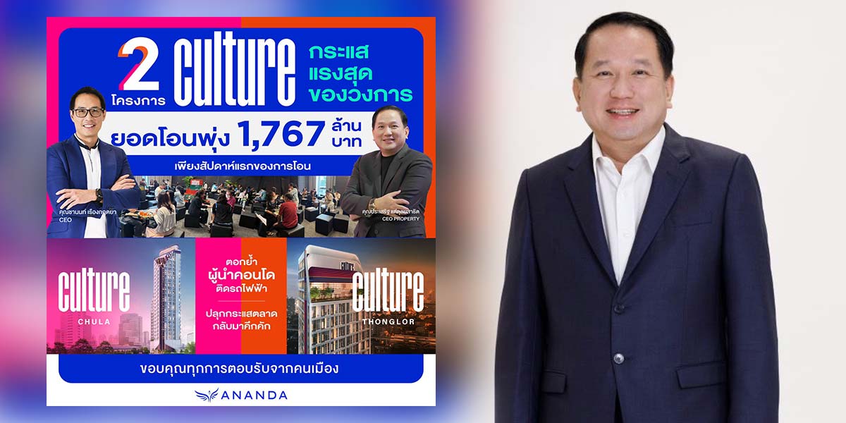 ANAN โชว์ยอดโอน “คัลเจอร์” 2 โครงการใหม่ ทะลุเป้า 1.77 พันลบ. เพียงสัปดาห์แรก