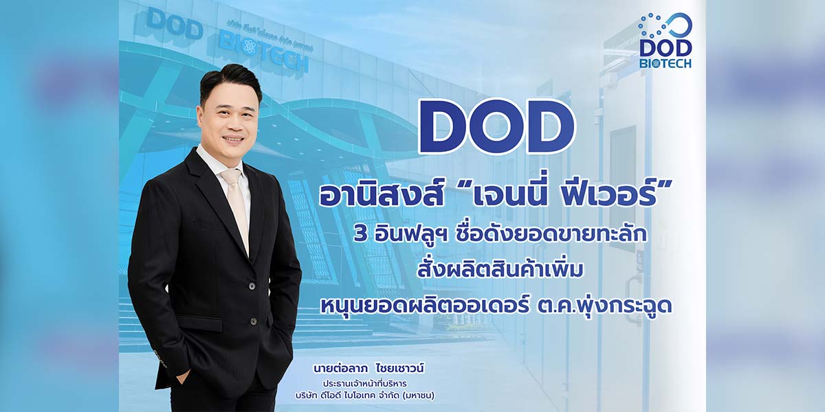 นายต่อลาภ ไชยเชาวน์ ประธานเจ้าหน้าที่บริหาร บริษัท ดีโอดี ไบโอเทค จำกัด (มหาชน) หรือ DOD ผู้รับจ้างผลิตผลิตภัณฑ์เสริมอาหารภายใต้ตราสินค้าของลูกค้า เปิดเผยว่า จากปรากฏการณ์กระแสไลฟ์สด “เจนนี่ฟีเวอร์” ในช่วงที่ผ่านมา หนุนให้ยอดผลิตออเดอร์ ทั้งผลิตผลิตภัณฑ์เสริมอาหาร และ คอลลาเจน เฉพาะเดือนตุลาคม เติบโตเพิ่มขึ้น 20-30% เทียบกับเดือนก่อนหน้านี้ ทั้งนี้เป็นผลมาจาก 3 อินฟลูเอนเซอร์ (Influencer) ชื่อดัง ซึ่งผลิตออเดอร์สินค้ากับ DOD ได้เข้าร่วมไลฟ์สดกับเจนนี่ ส่งผลให้ยอดขายสินค้า ของอินฟลูเอนเซอร์ 2 ใน 3 ราย มียอดขายแตะระดับ 10 ล้านบาทอย่างรวดเร็ว ซึ่งปรากฏการณ์ดังกล่าว ส่งผลให้มีคำสั่งผลิตออเดอร์ซ้ำเพิ่มขึ้นเฉลี่ย 3-6 ล้านบาทต่อราย