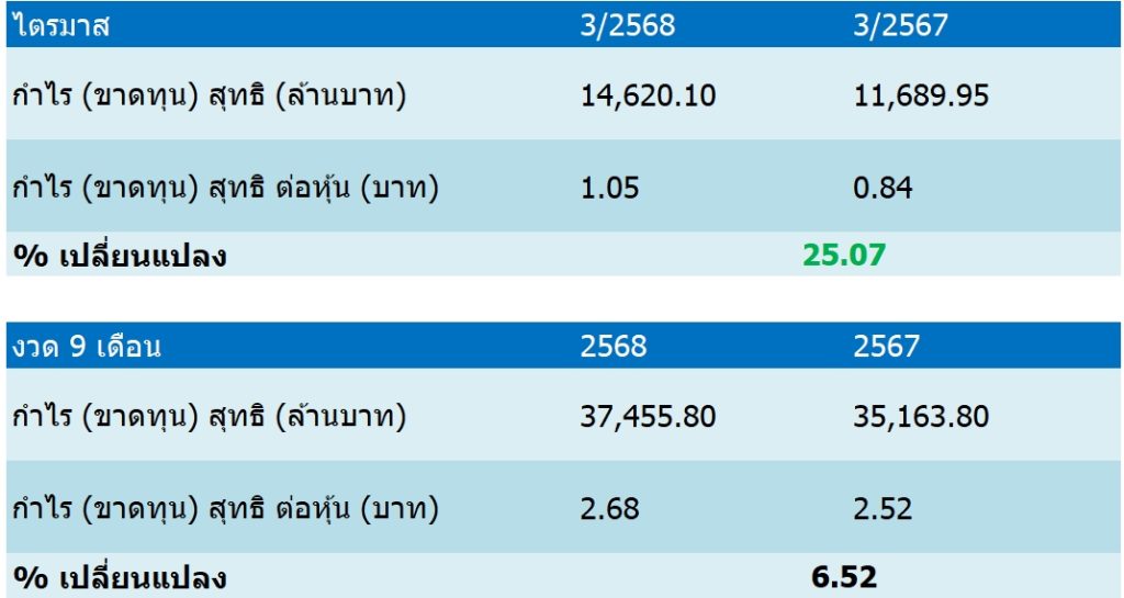 ธนาคารกรุงไทย จำกัด (มหาชน) หรือ KTB รายงานผลการดำเนินงานงวดไตรมาส 3 และงวด 9 เดือนแรกของปี 2568 มีกำไรสุทธิ ดังนี้