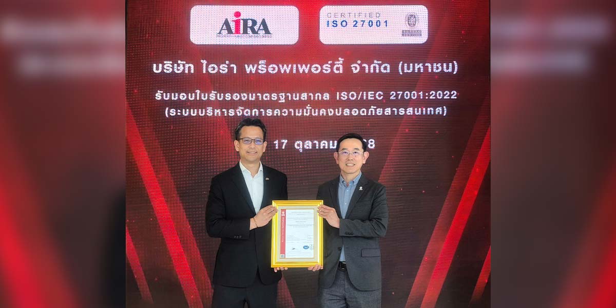 ไอร่า พร็อพเพอร์ตี้ รับมอบใบรับรอง ISO/IEC 27001:2022 เสริมความมั่นคงข้อมูล
