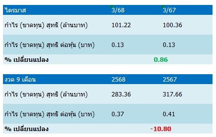 III กำไรไตรมาส 3/68 ทรงตัวที่ 101 ล้านบาท หนุนงวด 9 เดือนทำกำไรแตะ 283 ล้านบาท แม้รายได้รวมลดลงเล็กน้อย แต่ยังรักษาอัตรากำไรขั้นต้นเพิ่มขึ้นต่อเนื่องจากทุกกลุ่มธุรกิจ