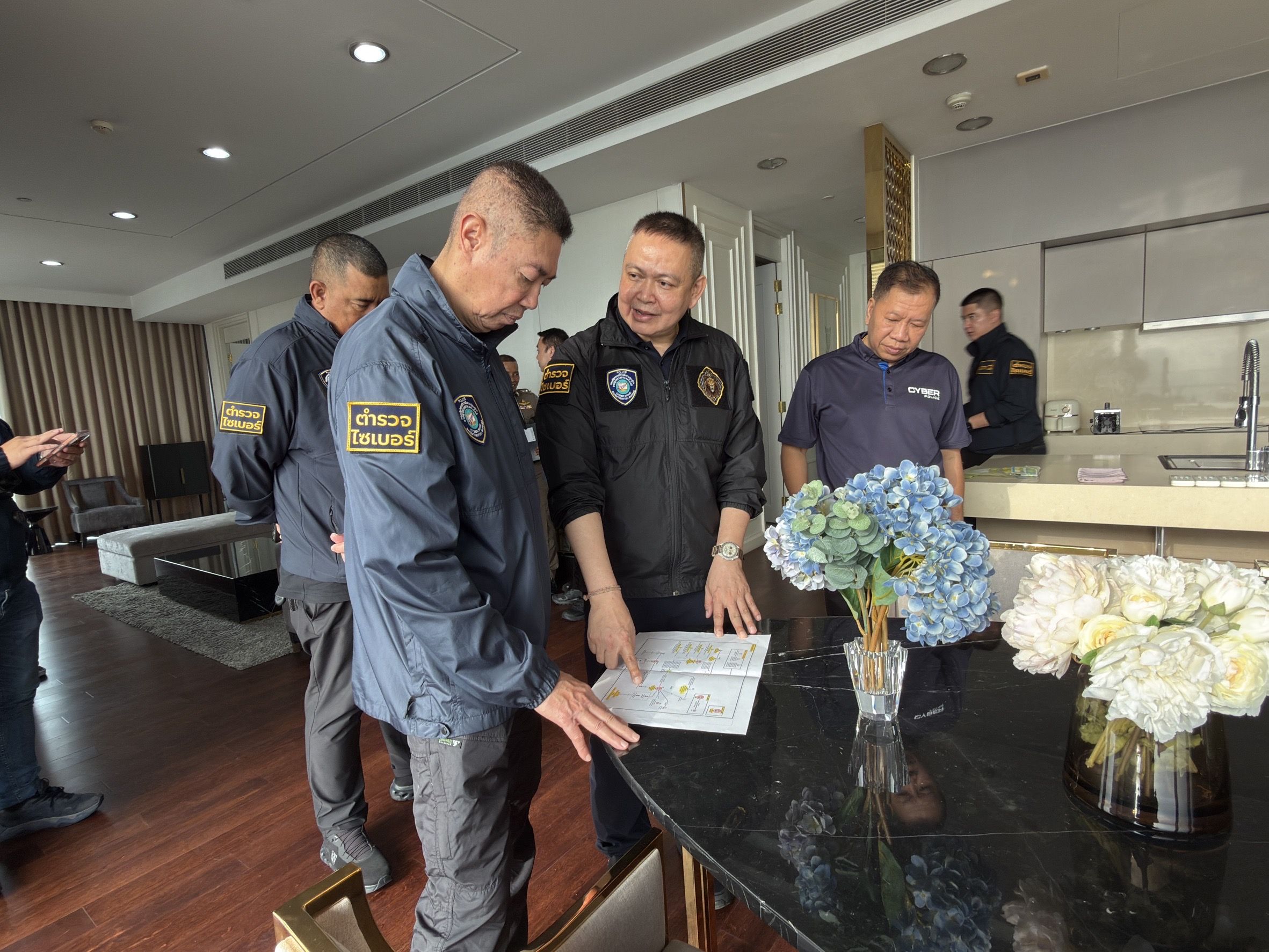 ขณะที่ วันนี้ เวลา 12.30 น. พล.ต.ท.จิรภพ นำกำลังเจ้าหน้าที่เข้าตรวจค้นห้องสูทหรูในคอนโดชื่อดัง โดยใช้ยุทธวิธีเข้าจู่โจมฉับพลัน ทำให้กลุ่มผู้ต้องหาไม่ทันตั้งตัว และไม่สามารถทำลายพยานหลักฐานในคอมพิวเตอร์ได้
