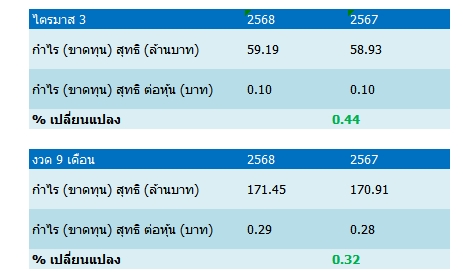 โดยกำไรไตรมาส 3/68 เพิ่มขึ้น เนื่องจากรายได้จากการให้บริการไตรมาส 3/68 อยู่ที่ 1,902.50 ล้านบาท เพิ่มขึ้น 4.4% จากไตรมาสเดียวกันปีก่อน 1,822.30 ล้านบาท