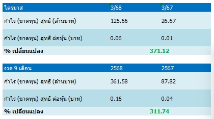 TURBO รายงานกำไรสุทธิไตรมาส 3/68 อยู่ที่ 125.7 ล้านบาท เพิ่มขึ้น 371% จากปีก่อน และ 38% จากไตรมาสก่อน แม้รายได้ลดเล็กน้อย แต่มีการบริหารต้นทุน-ความเสี่ยงสินเชื่อมีประสิทธิภาพ