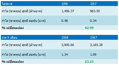 บริษัทรายงานผลการดำเนินงานในไตรมาส 3 ปี 2568 มีกำไรสุทธิ 1,406.37 ล้านบาท เพิ่มขึ้น 42.99% เมื่อเทียบกับงวดเดียวกันของปีก่อนมีกำไรสุทธิ 983.55 ล้านบาท โดยมีปัจจัยหลักมาจากการเติบโตของรายได้ทั้งจากธุรกิจสินเชื่อ และนายหน้าประกัน คุณภาพสินเชื่อรวมที่ดีขึ้นส่งผลให้ผลขาดทุนด้านเครดิตลดลง และการควบคุมต้นทุนอย่างมีประสิทธิภาพ