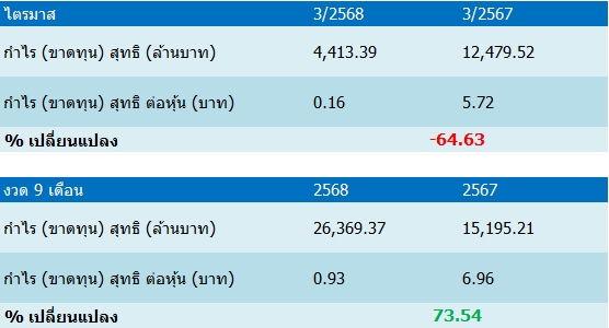 ขณะที่ผลประกอบการงวด 9 เดือนปี 68 มีกำไรสุทธิอยู่ที่ 26,369.37 ล้านบาท เพิ่มขึ้น 73.54% เมื่อเทียบกับงวดเดียวกันของปีก่อนมีกำไรสุทธิ 15,195.21 ล้านบาท