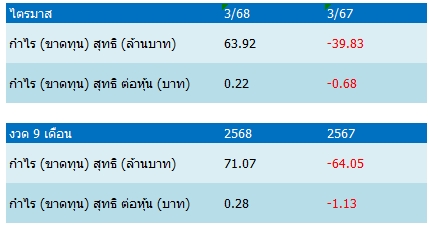 โดยในไตรมาส 3 ปี 2568 กลุ่มบริษัทมีรายได้รวม 162.90 ล้านบาท เพิ่มขึ้น 115.27 ล้านบาท หรือร้อยละ 242 เมื่อเทียบกับช่วงเดียวกันของปีก่อน ขณะที่รายได้รวมงวด 9 เดือนอยู่ที่ 416.19 ล้านบาท เพิ่มขึ้น 319.13 ล้านบาท หรือร้อยละ 329 จากปีที่ผ่านมา โดยเป็นผลมาจากการรับงานโครงการก่อสร้างและงานออกแบบจำนวนมากในทุกไตรมาส