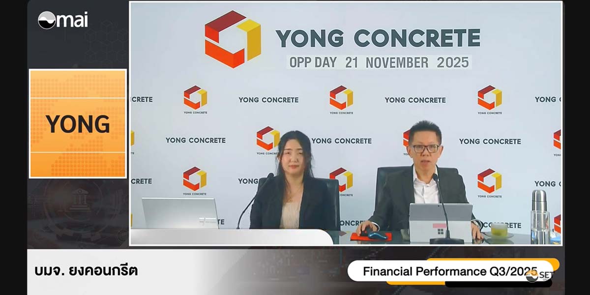 นายปฏิเวธ ศลิษฏ์อรรถกร รองกรรมการผู้จัดการสายงานบัญชีและการเงิน บริษัท ยงคอนกรีต จำกัด (มหาชน) YONG เปิดเผยในงาน Opportunity Day เมื่อวันที่ 21 พฤศจิกายน 2568 ว่า ไตรมาส 3/68 กลุ่มบริษัทมีรายได้รวม 254 ล้านบาท เพิ่มขึ้น 2.87% จากปีก่อน ได้แรงหนุนจากยอดขายผลิตภัณฑ์คอนกรีต โดยเฉพาะคอนกรีตผสมเสร็จสำหรับโครงการสะพานข้ามแยกวังสารพีและอุโมงค์ข้ามแยกแก่งเสี้ยน อีกทั้งมีการเปิดสาขา “แพลนท์ระยอง” เพิ่มอีก 1 แห่ง ส่งผลให้กำไรสุทธิไตรมาส 3 อยู่ที่ 9.94 ล้านบาท เพิ่มขึ้น 0.95% เมื่อเทียบกับช่วงเดียวกันของปีก่อน