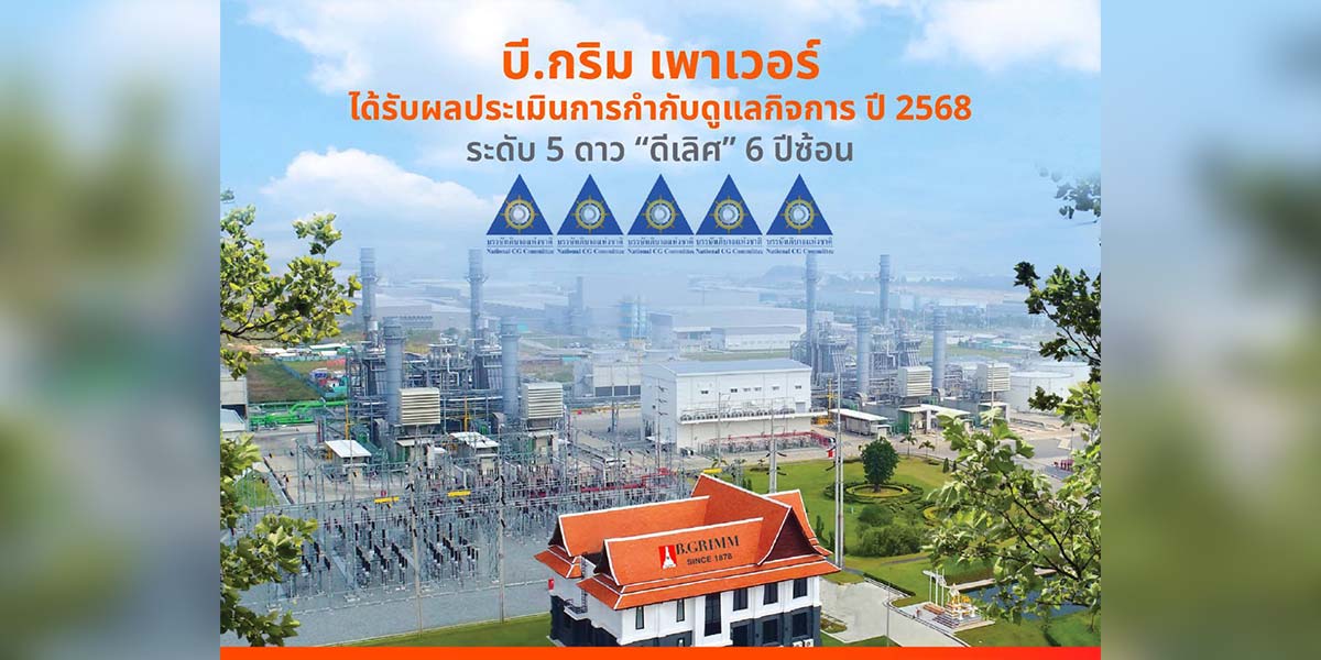 บริษัท บี.กริม เพาเวอร์ จำกัด (มหาชน) หรือ BGRIM ได้รับการประเมินจากโครงการสำรวจการกำกับดูแลกิจการของบริษัทจดทะเบียน (CGR) ประจำปี 2568 ซึ่งจัดขึ้นโดยสมาคมส่งเสริมสถาบันกรรมการบริษัทไทย (IOD) ภายใต้การสนับสนุนของตลาดหลักทรัพย์แห่งประเทศไทย และสำนักงานคณะกรรมการกำกับหลักทรัพย์และตลาดหลักทรัพย์ ในระดับ “ดีเลิศ” (5 ดาว) ต่อเนื่องเป็นปีที่ 6 ตอกย้ำการดำเนินธุรกิจด้วยความโปร่งใสภายใต้วิสัยทัศน์ “สร้างพลังให้กับสังคมโลกด้วยความโอบอ้อมอารี” (Empowering the World Compassionately) โดยยึดมั่นในหลักการกำกับดูแลกิจการที่ดี