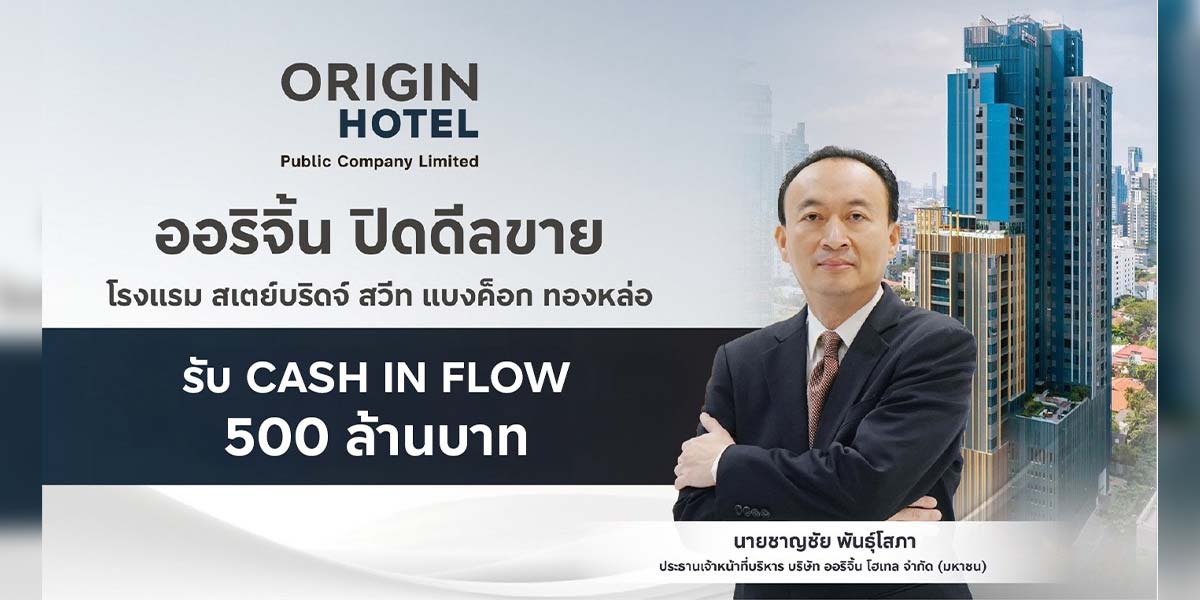 นายชาญชัย พันธุ์โสภา ประธานเจ้าหน้าที่บริหาร บริษัท ออริจิ้น โฮเทล จำกัด (มหาชน) ผู้ดำเนินธุรกิจอสังหาริมทรัพย์ในกลุ่มโรงแรมและการบริการที่สร้างรายได้ประจำ ภายใต้เครือ บริษัท ออริจิ้น พร็อพเพอร์ตี้ จำกัด (มหาชน) เปิดเผยว่า บริษัทได้ดำเนินการปิดการขายโรงแรม สเตย์บริดจ์ สวีท แบงค็อก ทองหล่อ (Staybridge Suites Bangkok Thonglor) ให้กับ บริษัท ตันบุญ จำกัด ซึ่งเป็นธุรกิจโรงแรมของครอบครัวคุณตัน ภาสกรนที (ไม่เกี่ยวข้องกับอิชิตัน กรุ๊ป) เป็นที่เรียบร้อย ส่งผลให้บริษัทได้รับกระแสเงินสดสุทธิรวมกว่า 500 ล้านบาท และสามารถบันทึกกำไรได้ทันทีในไตรมาส 4 ปี 2568