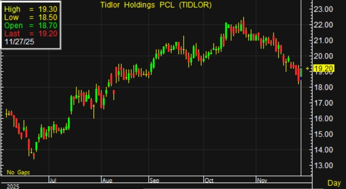 TIDLOR เด้ง 4% หลังประกาศจ่ายปันผลระหว่างกาลในอัตราหุ้นละ 0.34 บาท ขึ้นเครื่องหมาย XD 8 ธ.ค. กำหนดจ่าย 25 ธ.ค.68 ขณะที่โบรกคงประมาณการกำไรปี 2568 ไว้ที่ 5.2 พันล้านบาท เพิ่มขึ้น 22.3% จากปีก่อน ยังคงคำแนะนำ “ซื้อ” คงราคาเป้าหมายที่ 22.90 บาทต่อหุ้น