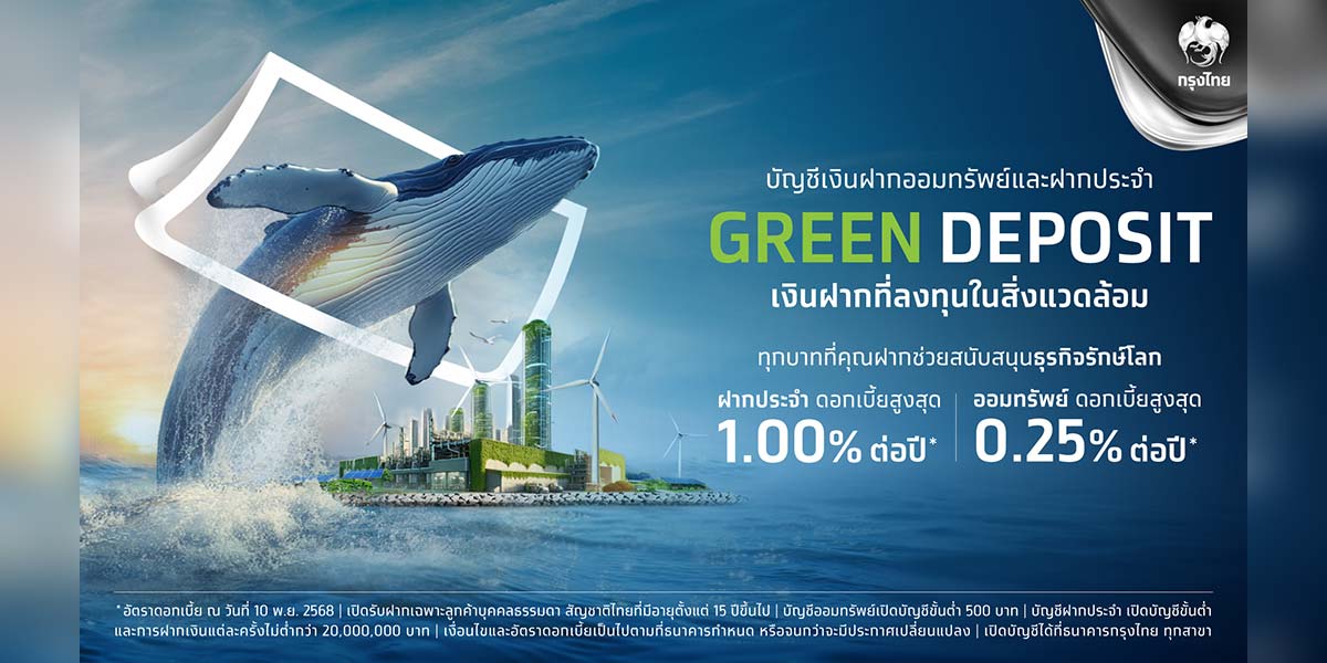“กรุงไทย” ก้าวสู่การเป็นผู้นำด้านการเงิน เปิดตัวบัญชีเงินฝาก “GREEN DEPOSIT” สำหรับลูกค้ารายย่อย ภายใต้แนวคิด “ทุกบาทที่ฝาก สร้างพลังสนับสนุนธุรกิจรักษ์โลก”