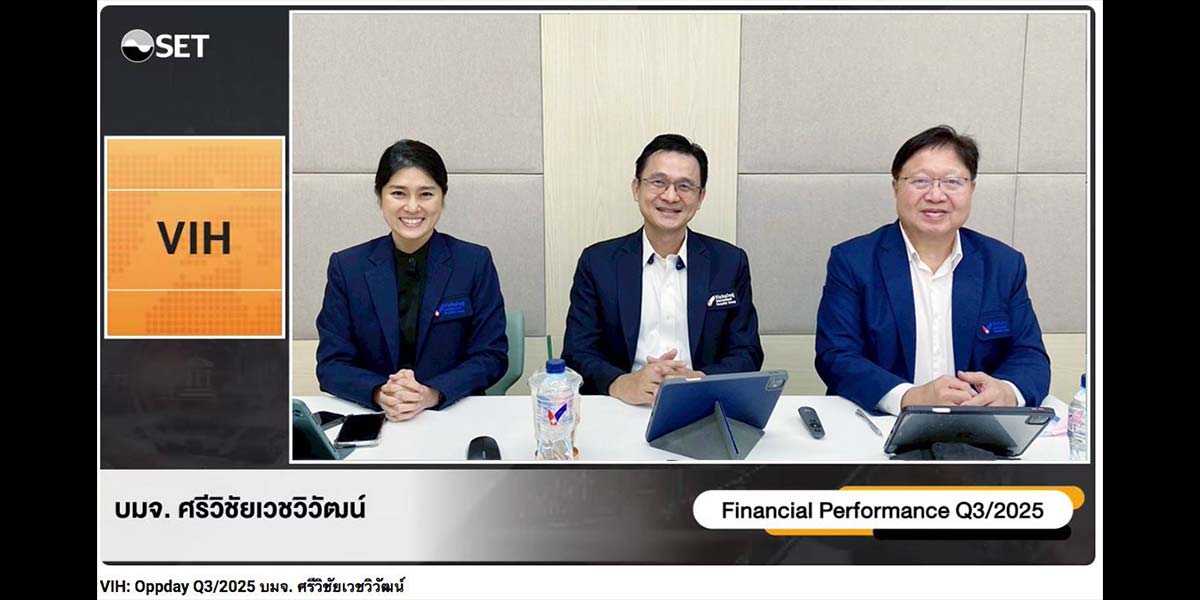นพ.มงคล วณิชภักดีเดชา รองประธานเจ้าหน้าที่บริหาร และดร.ศักดา ตั้งจิตวัฒนากร ประธานเจ้าหน้าที่บริหารการเงิน บริษัท ศรีวิชัยเวชวิวัฒน์ จำกัด (มหาชน) หรือ VIH ดำเนินธุรกิจในนามกลุ่มโรงพยาบาลวิชัยเวช อินเตอร์เนชั่นแนล เข้าร่วมให้ข้อมูลนักลงทุนในงาน Opportunity Day ประจำไตรมาส 3/2568 ถ่ายทอดผ่านแพลตฟอร์มออนไลน์ของตลาดหลักทรัพย์แห่งประเทศไทย (SET) โดยเปิดเผยถึง ผลการดำเนินงานสำคัญที่เติบโตอย่างแข็งแกร่งท่ามกลางสภาวะเศรษฐกิจท้าทายในไตรมาส 3/2568 บริษัทมีกำไรสุทธิ 127.73 ล้านบาท เพิ่มขึ้นถึง 36.99% จากงวดเดียวกันของปีก่อน ขณะที่รายได้รวมอยู่ที่ 835.14 ล้านบาท ปรับตัวเพิ่มขึ้น 12.11% ปัจจัยหนุนหลักมาจากการเติบโตของรายได้ในส่วนของศูนย์หัวใจ ศูนย์จักษุและ การตรวจสุขภาพเคลื่อนที่ ควบคู่กับการบริหารจัดการต้นทุนอย่างมีประสิทธิภาพ ส่งผลให้อัตรากำไรสุทธิ (Net Profit Margin) เพิ่มขึ้นเป็น 15.29% จาก 12.52% ในปีก่อนหน้า
