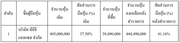 TEGH แจ้ง “ทีอีจี แอทเซท” ผู้ถือหุ้นใหญ่ซื้อบิ๊กล็อตเพิ่ม 39.49 ล้านหุ้น ดันถือ 41.16%