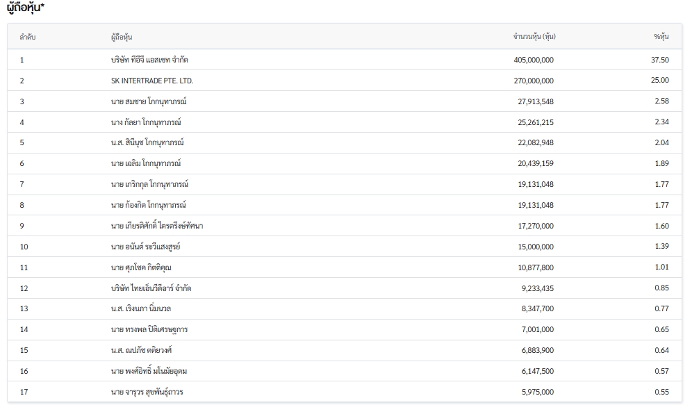 ภาพรวมข้อมูลผู้ถือหุ้น ณ วันที่ 20 มี.ค. 2568