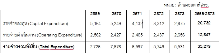 สำหรับแผนการลงทุน 5 ปี (2569-2573) บริษัทได้จัดสรรงบประมาณรวม 33,279 ล้านดอลลาร์ สรอ. (เทียบเท่า 1,089,887 ล้านบาท) โดยมีรายละเอียด ดังนี้